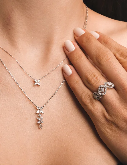 - Halsketten und Anhänger – klassische Diamantmodelle, Varianten mit Perlen und gewagte Designakzente.